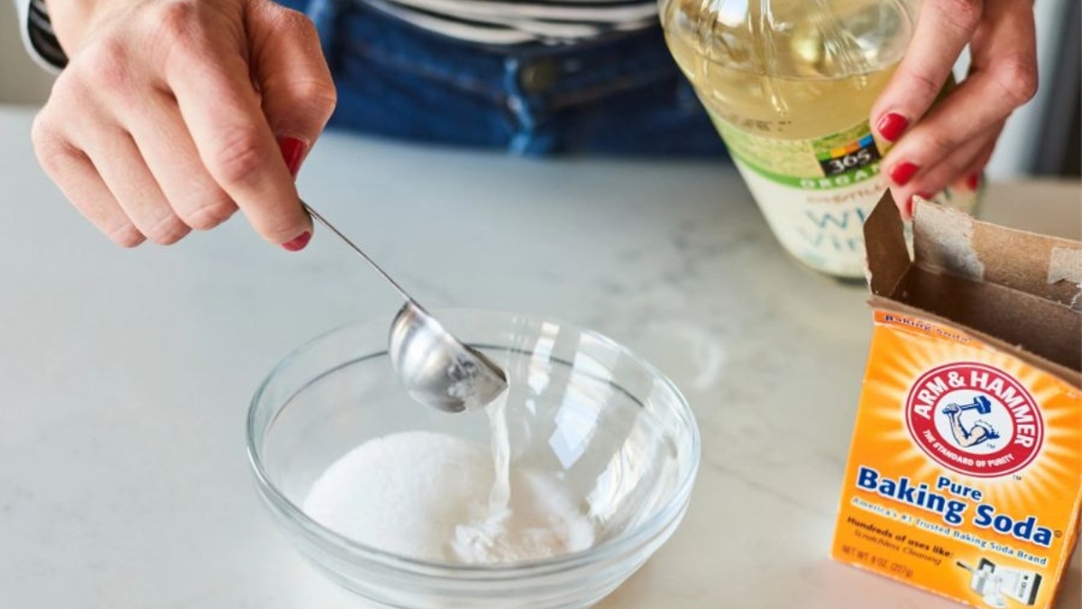 Bạn hoàn toàn có thể kết hợp các nguyên liệu tự nhiên để tăng hiệu quả làm sạch bình giữ nhiệt. Một trong những cách phổ biến là trộn baking soda với giấm. Khi đổ giấm vào bình đã có sẵn baking soda, hỗn hợp sẽ sủi bọt mạnh mẽ, giúp làm bong các mảng bám, loại bỏ cặn bẩn và khử mùi hiệu quả. Sau khi phản ứng kết thúc, bạn chỉ cần để yên vài phút rồi rửa lại bình với nước sạch.