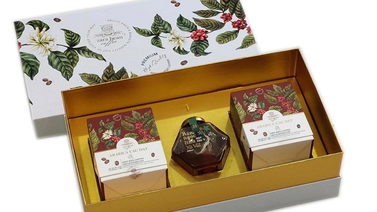 Được đóng gói trong hộp quà sang trọng, set quà vừa tinh tế lại vừa mang thông điệp ý nghĩa: "Chúc sức khỏe – Chúc thịnh vượng – Chúc thành công."