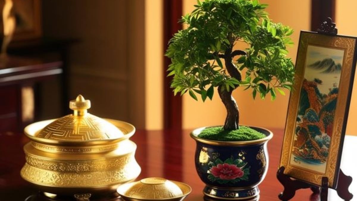 Gợi ý quà tặng: Những vật phẩm chế tác từ vàng lá 24k, tượng đồng đúc tinh xảo hoặc quả cầu đá thạch anh vàng. Đặc biệt, các dòng tranh dát vàng như tranh chim công, tranh thiên nga là lựa chọn thượng hạng, vừa sang trọng vừa kích hoạt tài lộc bền vững.