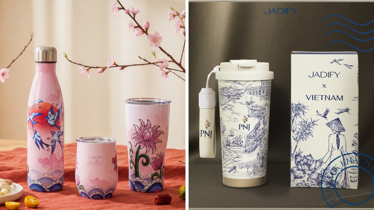 Jadify mang đến quà tặng bình giữ nhiệt cao cấp được thiết kế tinh tế, lấy cảm hứng từ văn hóa và biểu tượng Việt Nam. Sản phẩm nổi bật với kiểu dáng hiện đại, chất liệu bền đẹp và hoa sen họa tiết mang đậm hồn Việt – từ phố cổ Hà Nội, hoa sen đến tranh Đông Hồ.