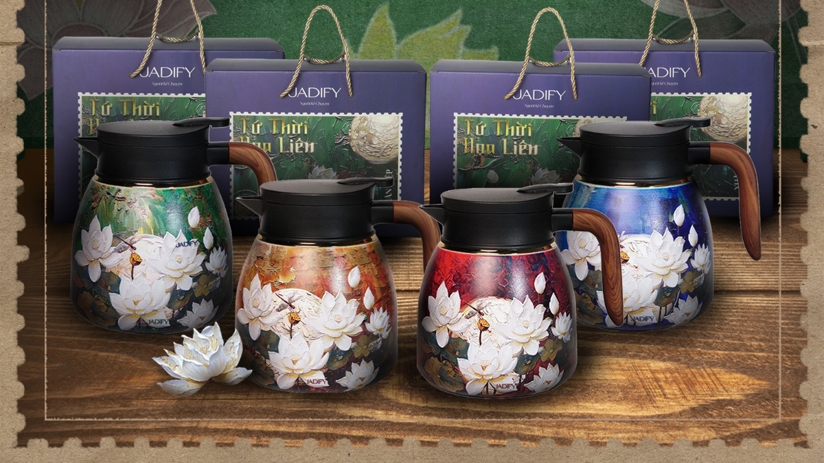 Ấm giữ nhiệt Jadify phiên bản Hoa Sen Việt Nam đang làm mưa làm gió nhờ thiết kế đậm chất Việt Nam, đẹp mê hồn từ trong ra ngoài. Toàn thân bình phủ họa tiết hoa sen nở bung tinh tế, được in chuyển nhiệt 3D sắc nét, từng cánh sen nổi bật như tranh Đông Hồ thu nhỏ. Đặc biệt, nắp khóa 3 lớp kèm gioăng silicon kép kín tuyệt đối, lắc mạnh hay lật ngược đều không hề nhỏ giọt – điều hiếm thấy ở phân khúc này.